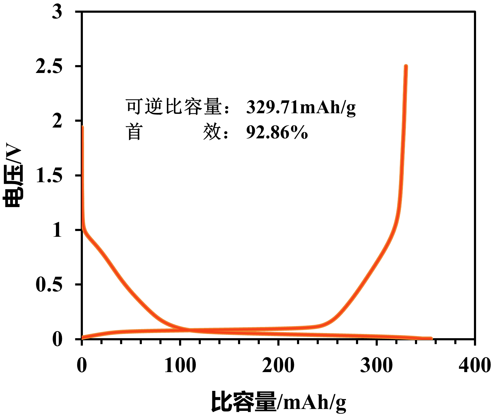 HC-320半電池初始充放電曲線